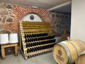 Järgmisena jõudsime Allikukivi Veinimõisa. Kuulasime ettevõtja (Pärnu Lahe Partnerluskogu juhatuse liige) veinimõisa kujunemise lugu. Tegemist on pereettevõttega, mis põhiliselt kasvatab marju ja toob neist käsitöö‑marjaveine. Marjakasvatus: mustad, punased ja rohelised sõstrad, vaarikad, kirsid, rabarber jms, mis moodustavad tooraine veinide valmistamiseks. Valmistatakse ka marjalikööre. Suvekuudel pakutakse ööbimisvõimalusena glämping‑telke mõisa territooriumil. Perenaine Raili Hein jagas meiega oma teekonda Tallinnast Allikukivi külla vanasse koolimajja. Mõisahoonesse, mille algne häärber ehitatud 1860‑tel aastatel ja mis praegu on kasutuses veinimõisana. Saime maitsta väga kvaliteetseid marjaveine, mille valmistamiseks on perenaine läbinud koolitusi nii Eestis, kui Soomes. Ostsime kaasa puhtaid eestimaiseid kvaliteetseid marjaveine ja likööre. Allikukivi Veinimõis on aktiivne LEADER toetuste küsija ja projektide elluviija. Läbi aegade on elluviidud ja elluviimisel pea kakskümmend projekti ettevõtluse tugevdamiseks.