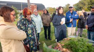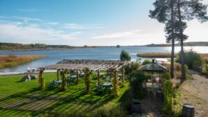Võtsime suuna Upplandi maakonna poole, kus peatusime Hornuddenis https://hornudden.net/ Talus on mahepõllumajanduslik aed koos restorani, talupoe ja puhkemajutusega, mis asub Mälareni järve keskel. LEADER toetust on saadud noortele sotsiaalprojekti jaoks. Noortele, kellel on sotsiaalsed probleemid, pakuti võimalust aiatöödes kaasa lüüa. Ühiselt väikese seltskonnaga toimetamine andis noortele võimaluse enese avamiseks ning seeläbi parema tasakaalu leidmiseks enda sees. Pere ettevõttes töötavad kaks põlvkonda. Lisaks pakuvad erinevate sündmuste jaoks ruume ja toitlustust. Saime meiegi maitsva lõunasöögi.