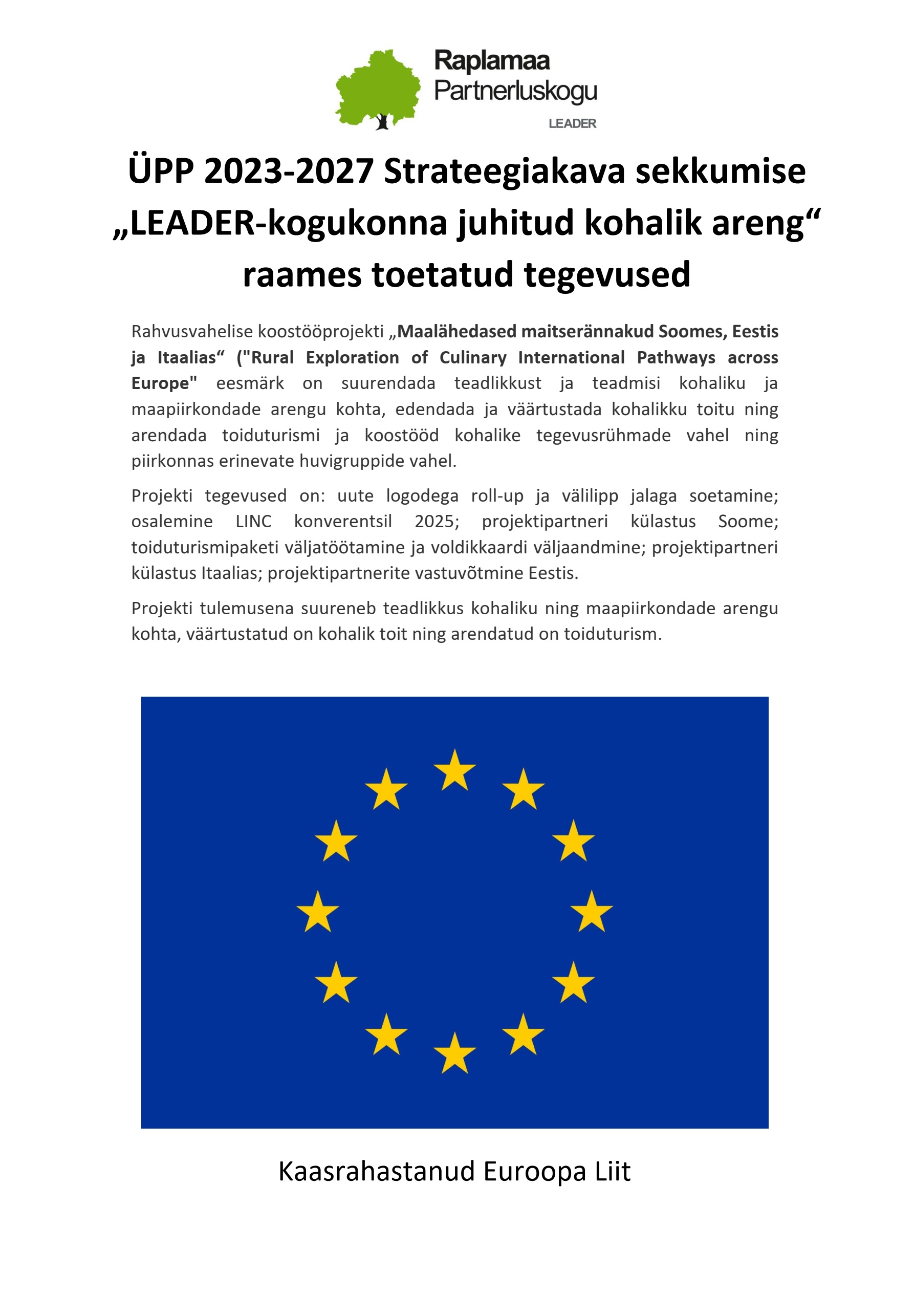 Rahvusvaheline koostööprojekt “Maalähedased maitserännakud Soomes, Eestis ja Itaalias” (inglise keeles “Rural Exploration of Culinary International Pathways across Europe”