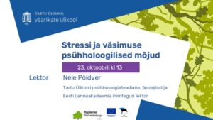Teise hooaja teine loeng toimub Rapla Kultuurikeskuse saalis 23. oktoobril 2025 kell 13.00-15.00. Esineb Tartu Ülikooli psühholoogiateadlane, õppejõud ja Eesti Lennuakadeemia inimteguri lektor Nele Põldver teemal “Stressi ja väsimuse psühholoogilised mõjud”.